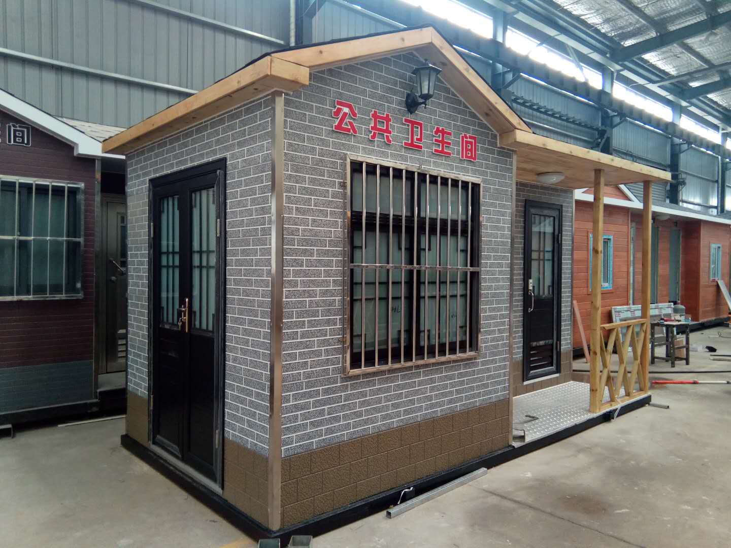 1、房體結(jié)構(gòu): 采用輕鋼龍骨結(jié)構(gòu),鋼材全部使用國家標(biāo)準(zhǔn)鍍鋅鋼材。根據(jù)房體的大小特選用國標(biāo)方管(50-100)焊接而成。鍍鋅管厚度為2.8mm,方管經(jīng)過除銹后進行鍍鋅、防腐處理。這樣就會延長廁所使用壽命。